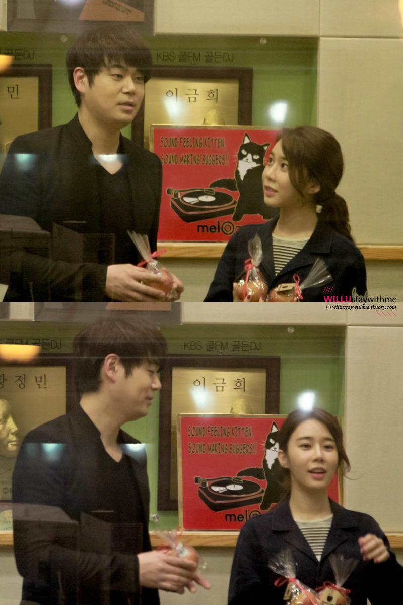 (공손히 디제이에게 직접 앨범을 전달합니다.)